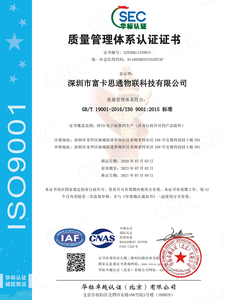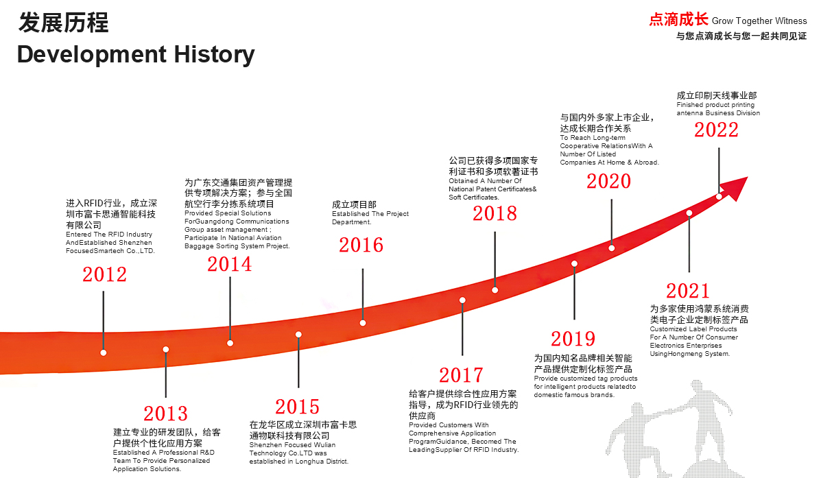 富卡思通創(chuàng)立于2012年8月,專注于物聯(lián)網(wǎng) RFID 領(lǐng)域,經(jīng)過(guò)12年的發(fā)展,已經(jīng)成為一家集產(chǎn)品設(shè)計(jì)、研發(fā)、銷售、服務(wù)為一體的 RFID 應(yīng)用解決方案提供商,同時(shí)也是一家專業(yè)的 RFID 電子標(biāo)簽制造企業(yè)。專注于 RFID 核心技術(shù)、擁有自主研發(fā)團(tuán)隊(duì),致力于開(kāi)發(fā) RFID 系統(tǒng)平臺(tái)、 RFID 產(chǎn)品與 RFID 項(xiàng)目解決方案,為客戶提供 RFID 相關(guān)產(chǎn)品和配套軟硬件。